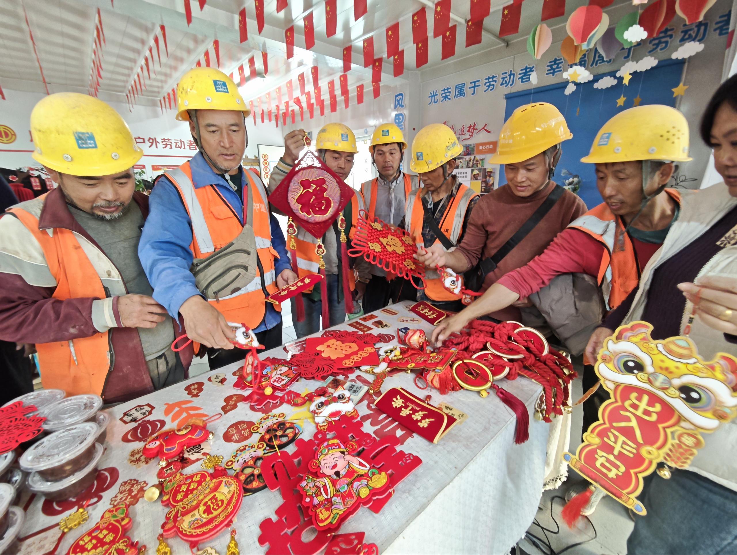 除暖心腊八粥外,项目还准备了福字、春联、中国结等寓意吉祥的新春福礼,为活动再添几分喜庆氛围。工友们与市民围聚在礼品桌前,细细挑选心仪的福饰,有的手持大红福字拍照留念,定格这份冬日喜悦;有的互相帮忙搭配中国结挂件,分享挑选心得,现场欢声笑语不断,暖意与年味交织相融,提前感受着浓浓的节日温情。