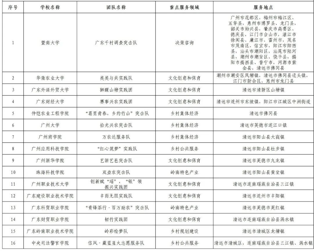 近日,团省委公布了2025年广东大中专学生志愿者暑期文化科技卫生“三下乡”社会实践活动暨广东青年大学生“百千万工程”突击队行动品牌项目及典型案例。其中,与我市结对的突击队有16个项目入选省级品牌项目、41个案例入选典型案例。